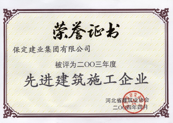 03年度省先進(jìn)建筑施工企業(yè)證書