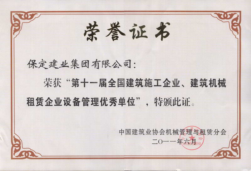 2011全國十一屆機(jī)械租賃優(yōu)秀企...