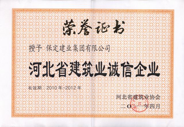 2010-2012河北省建筑業(yè)誠信企業(yè)