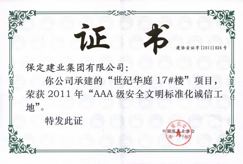 世紀(jì)華庭17樓全國3A級(jí)安全文明...