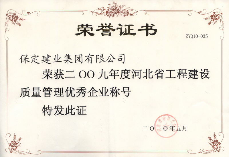 09年度省工程建設(shè)質(zhì)量管理優(yōu)秀...