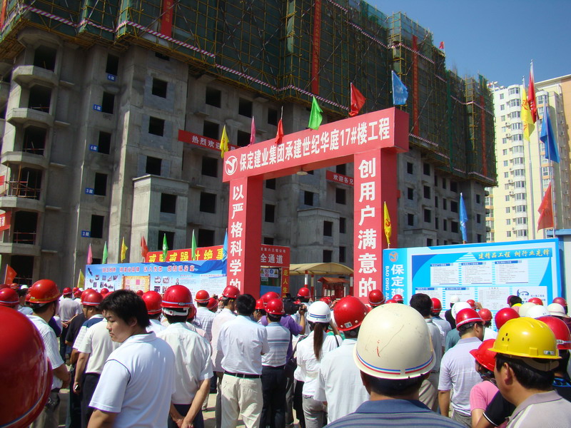 2010年7月20日,由市建設(shè)局安監(jiān)站在華北電力大學(xué)會議室組織召開了建設(shè)系統(tǒng)安全文明施工現(xiàn)場會。會議有省、市安監(jiān)站領(lǐng)導(dǎo),市、縣、區(qū)建設(shè)局、安監(jiān)站主要領(lǐng)導(dǎo),全市及駐保主要建筑施工企業(yè)負(fù)責(zé)人參加。集團(tuán)六公司世紀(jì)華庭17號樓項(xiàng)目部被選為與會人員參觀的樣板項(xiàng)目部。