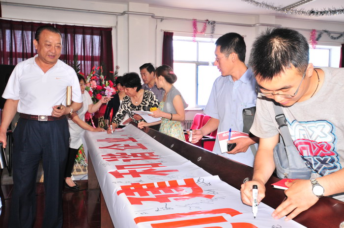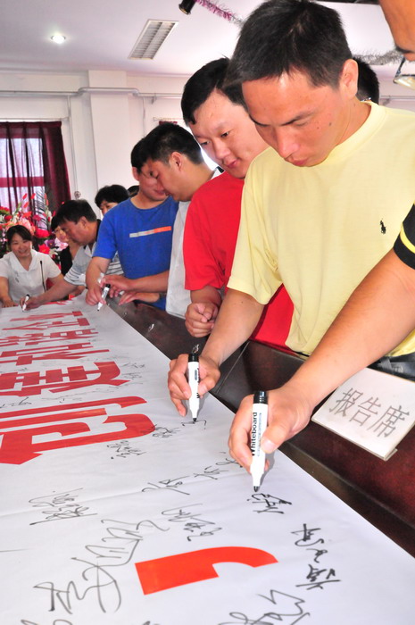 參會(huì)人員在“科學(xué)發(fā)展,安全發(fā)展,創(chuàng)建和諧企業(yè),從我做起”條幅上簽字