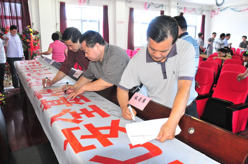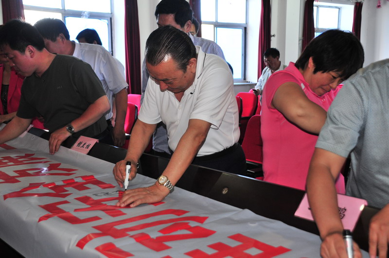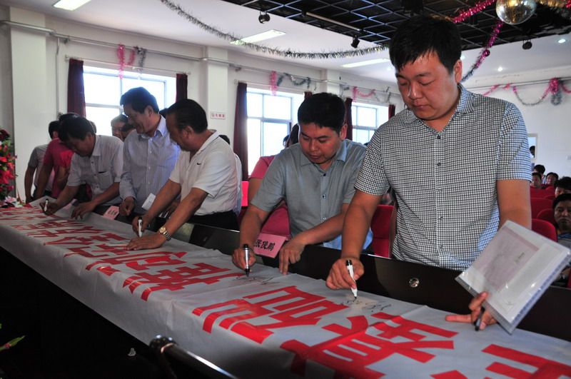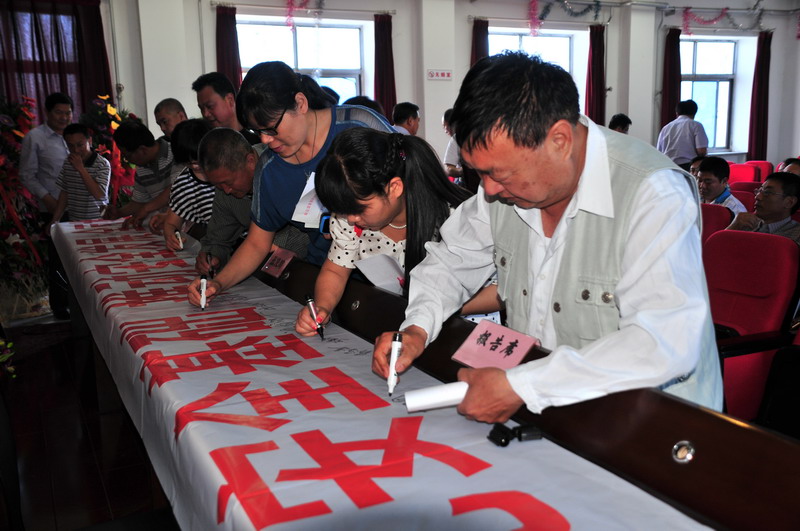 參會人員在“強化安全基礎(chǔ),推動安全發(fā)展,全面推行標準化”條幅上簽字