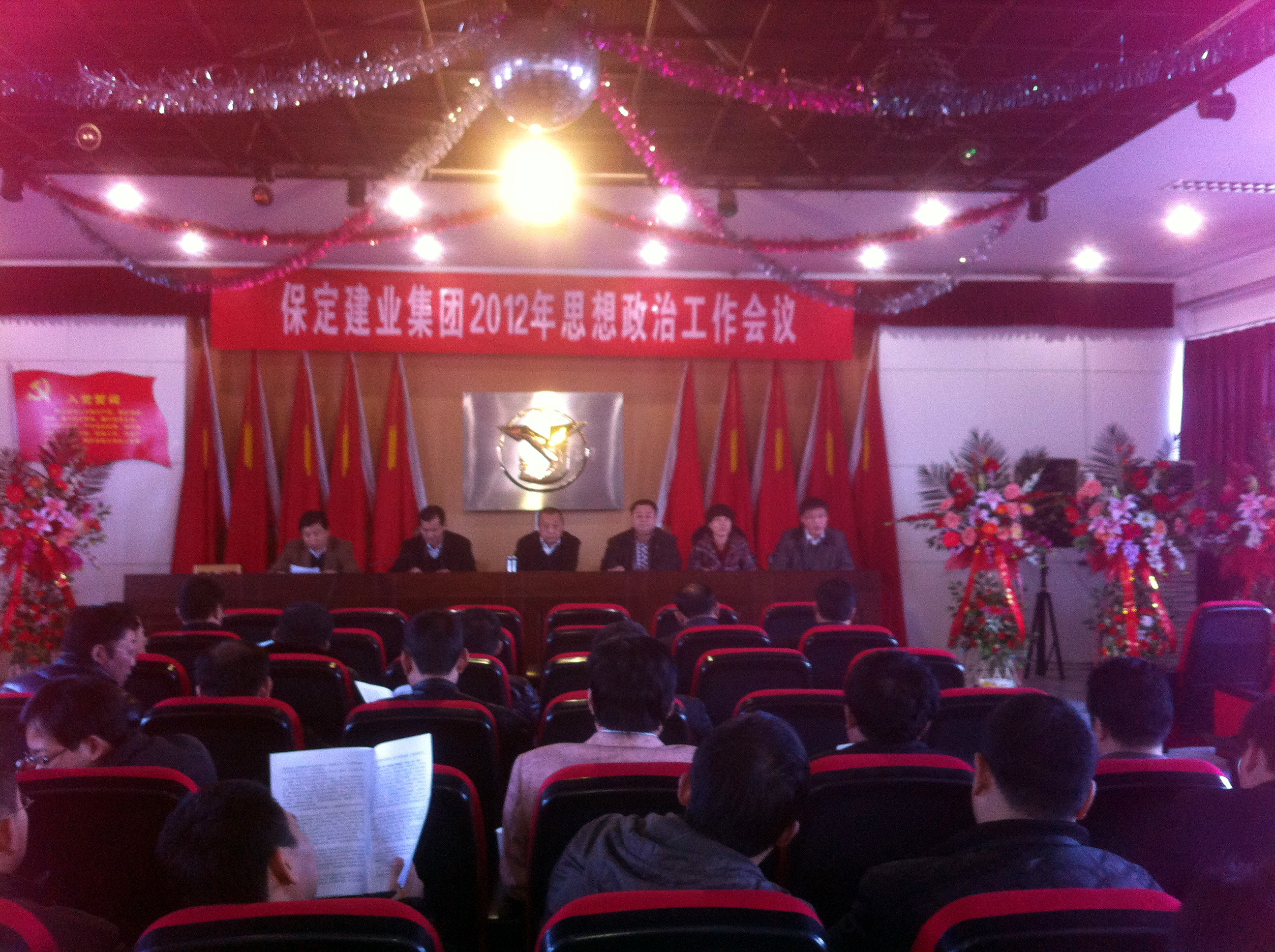 2012年3月14日,保定建業(yè)集團(tuán)有限公司2012年思想政治工作會(huì)議在莊嚴(yán)的國(guó)歌聲中拉開了序幕,會(huì)議由黨委辦公室主任馬亞軍主持,集團(tuán)各公司黨、政、工、團(tuán)、婦、武裝、保衛(wèi)負(fù)責(zé)人參加會(huì)議。