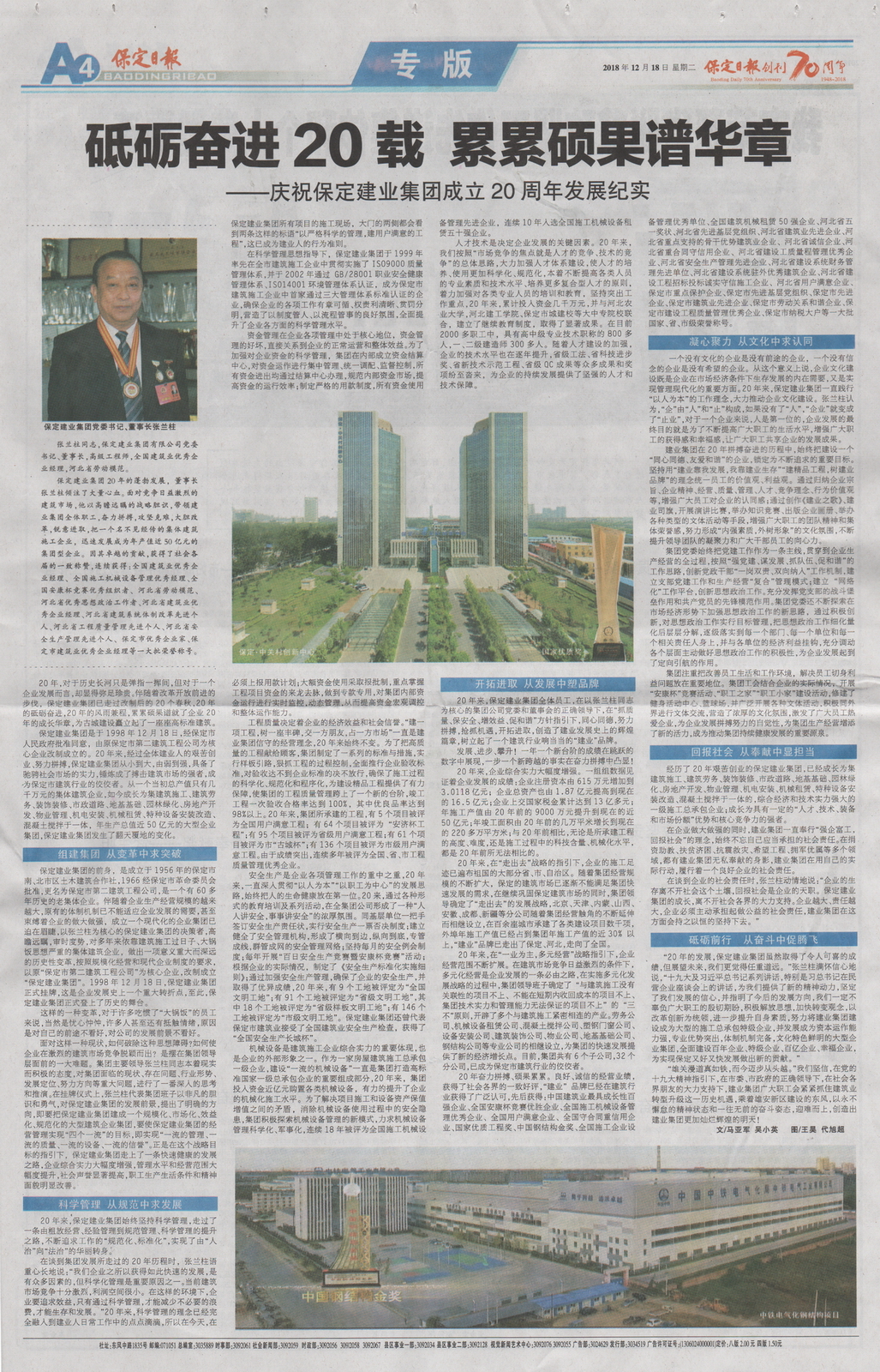保定日?qǐng)?bào)專版報(bào)道集團(tuán)公司成立二十周年